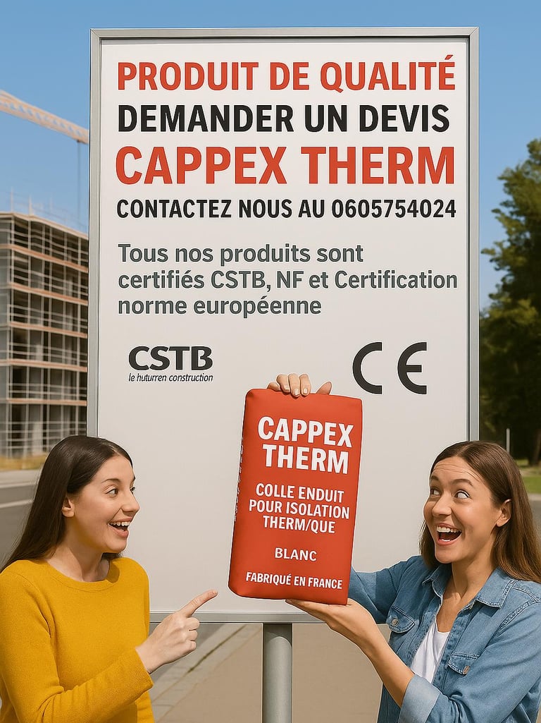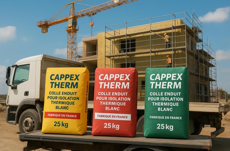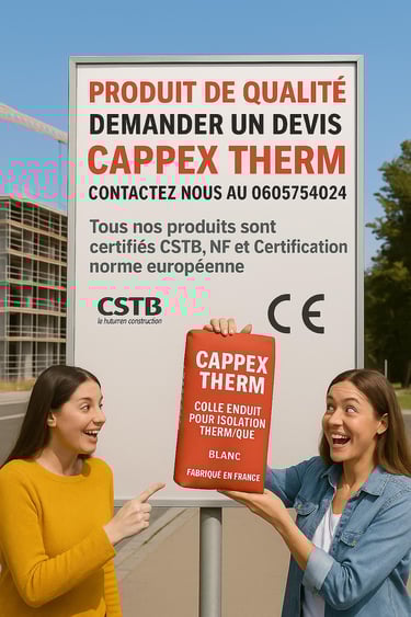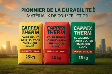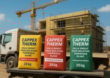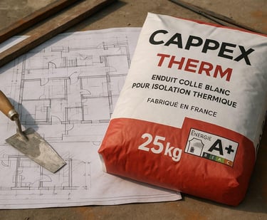 Depuis plusieurs années, CAPPEX THERM fabrique des colles et enduits professionnels destinés à l’isolation thermique, au ravalement et aux applications façade.